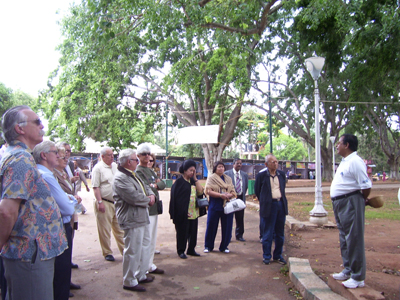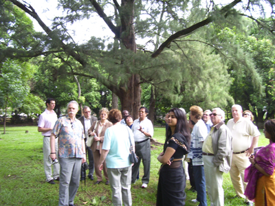 It was an invigorating morning after a night of light rain. The sun was out, the air cool with a light breeze and the leaves glistened in the sunlight. All the Walkers were enlivened with the discovery of known Trees as well as trees being seen for the first time. It was appropriate that walkers from around the world were seeing worldwide flora planted in this garden. There would of course be trees in Lalbagh which would be common to the trees from all the countries from which the delegates came.