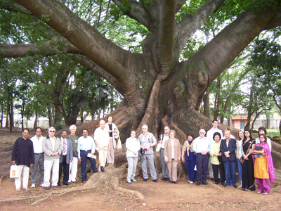The UN delegates pose, after their Walk, under LalBagh's venerable Silk Cotton Tree